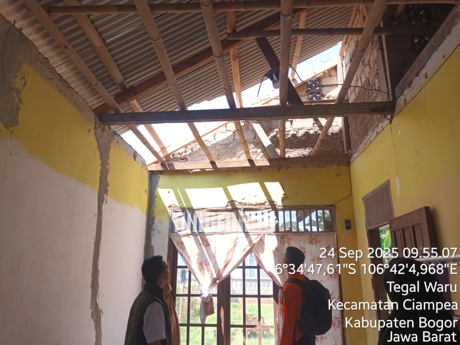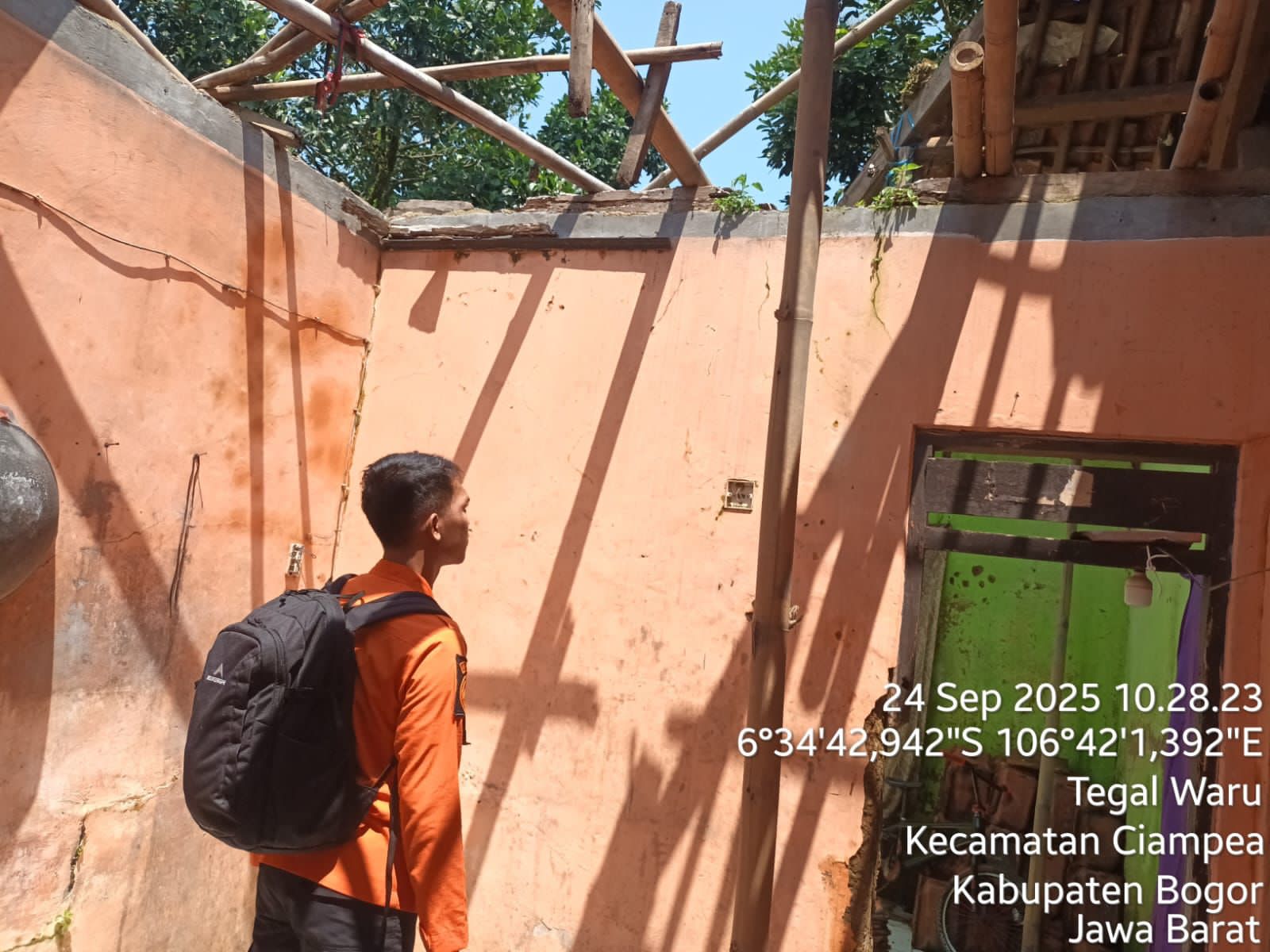 Akibat kejadian itu, petugas mencatat 55 unit rumah rusak ringan, 13 unit rumah rusak sedang, dan satu unit rumah rusak berat. Selain kerugian material, BPBD Kabupaten Bogor melaporkan sedikitnya 71 Kepala Keluarga (KK) atau 241 jiwa terdampak.