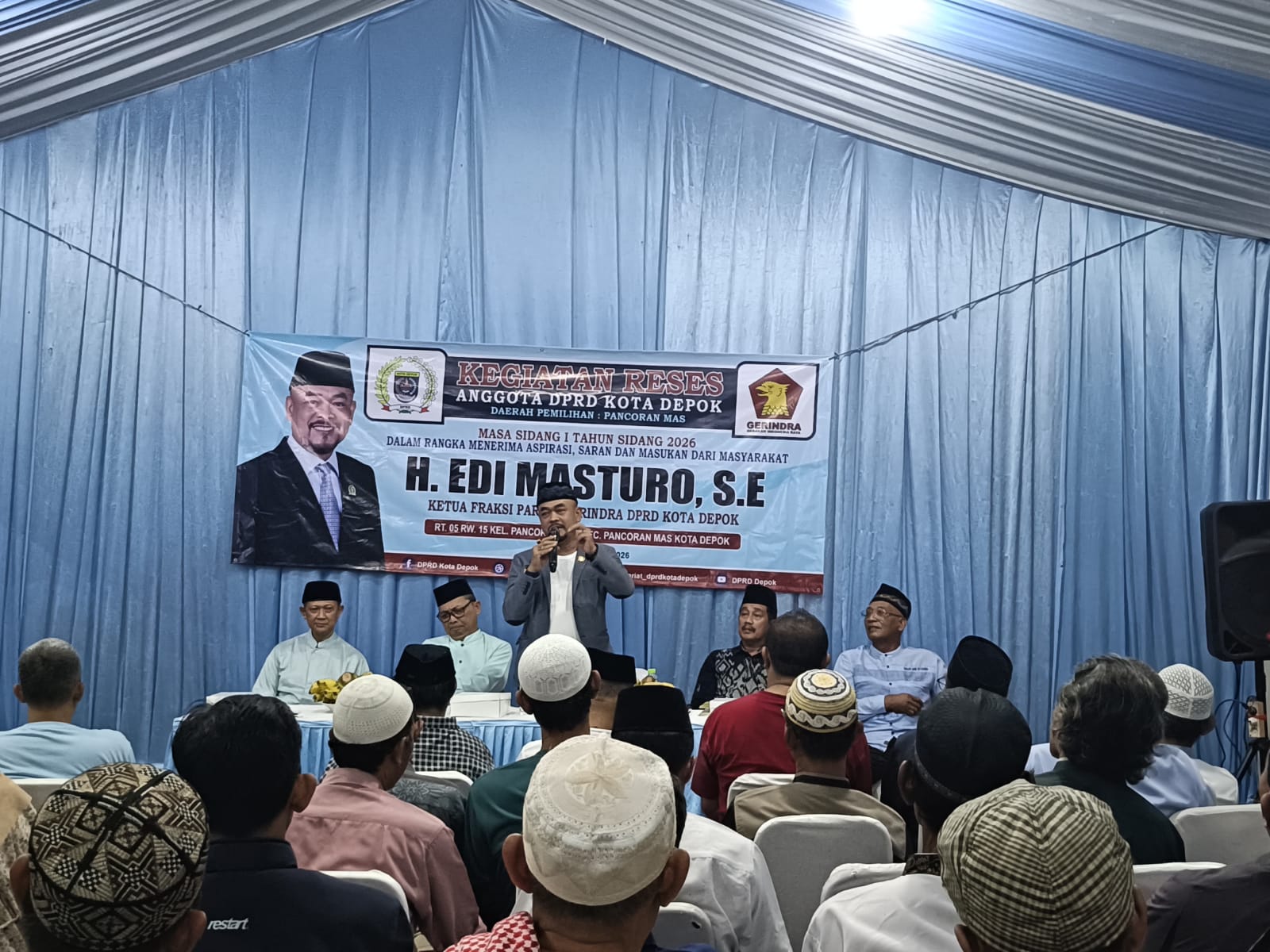 uklik.net – DEPOK, – Untuk menyerap aspirasi warga, Ketua Fraksi Gerindra DPRD Kota Depok, Edi Masturo menggelar kegiatan reses masa sidang pertama sekaligus silaturahmi dengan warga masyarakat didaerah pemilihannya, Kecamatan Pancoran Mas, Jum’at (30/1/2026).