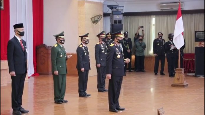 Hal tersebut disampaikan kapolda usai melakukan upacara Hari Bhayangkara ke-74 di Gedung Borobudur Kompleks Mapolda Jateng, Rabu (1/7/2020). Upacara secara virtual digelar dengan menerapkan protokol kesehatan mengingat masih pandemi Covid-19. Tampak hadir Gubernur Jateng Ganjar Pranowo, Ketua DPRD Jateng Bambang Kusriyanto, Pangdam IV/Diponegoro Mayjen TNI Bakti Agus Fadjari, Kajati Jateng Priyanto SH MH dan Ketua Pengadilan Tinggi Jateng Dr H Cicut Sutiarso SH MHum.