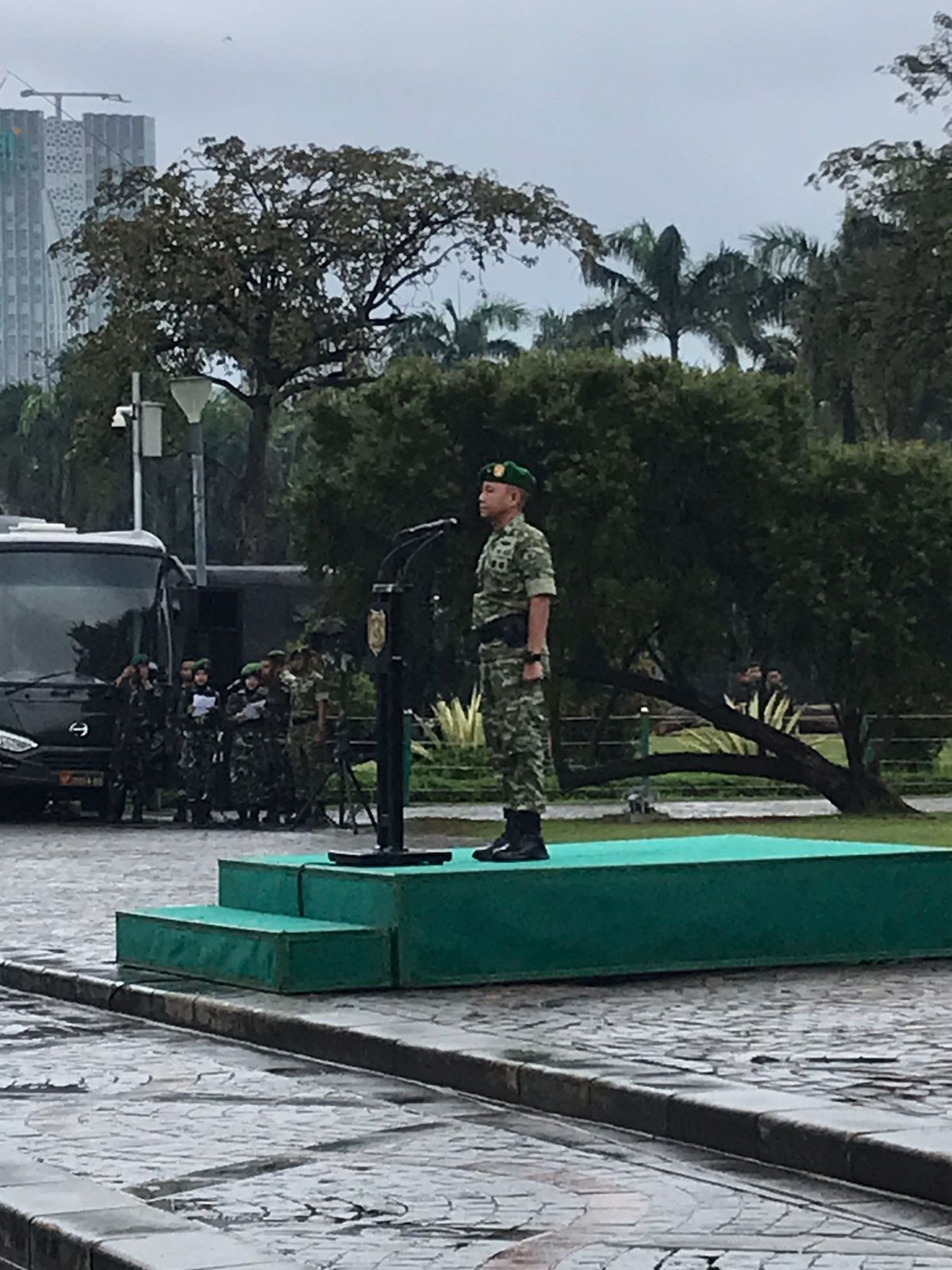 Kepala Staf Kodam Jaya/Jayakarta, Brigjen TNI Zulhadrie S. Mara, M.Han., memimpin Apel Gelar Pasukan dalam rangka kesiapsiagaan pengamanan menyambut Tahun Baru 2026. Kegiatan tersebut berlangsung di Lapangan Silang Monas, Jakarta Pusat, Rabu (31/12/2025).