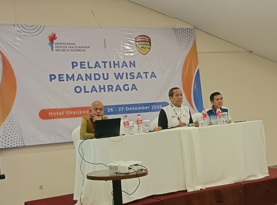 Uklik.net – Jakarta – Badan Pengembangan Industri dan Riset Olahraga (BAPINDRA) bekerja sama dengan Kementerian Pemuda dan Olahraga (Kemenpora) RI menggelar Pelatihan Pemandu Wisata Olahraga selama dua hari, 26–27 Desember 2025, bertempat di Hotel Shankee, Kuningan, Jakarta. Kegiatan ini bertujuan mencetak pemandu wisata olahraga yang profesional, kompeten, dan berwawasan nasional guna mendukung pengembangan industri olahraga serta ekonomi kreatif.