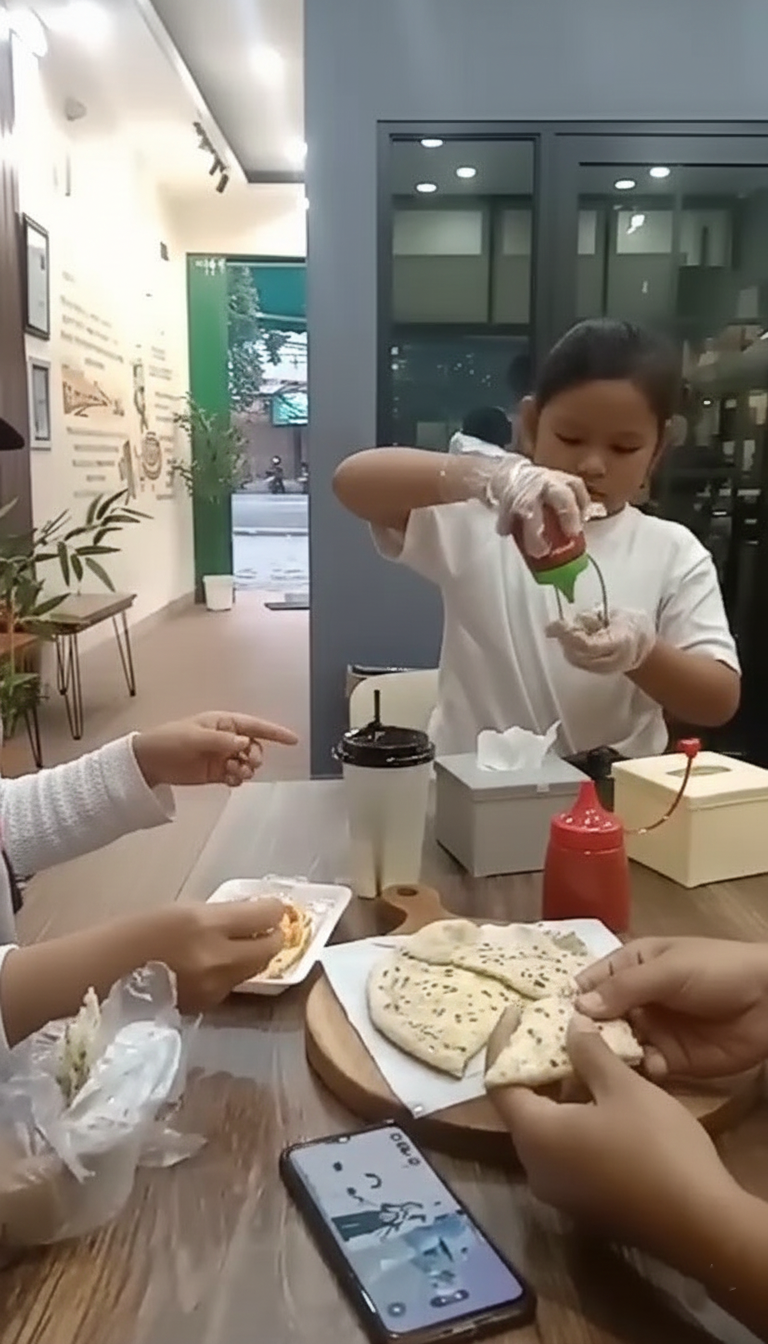 Reaksi serupa juga datang dari seorang anak bu meilin yang menikmati pizza mini dengan gembira, “Enak! Rotinya lembut… kayak agak manis,” ujarnya sambil menggigit lagi dengan senyum lebar.