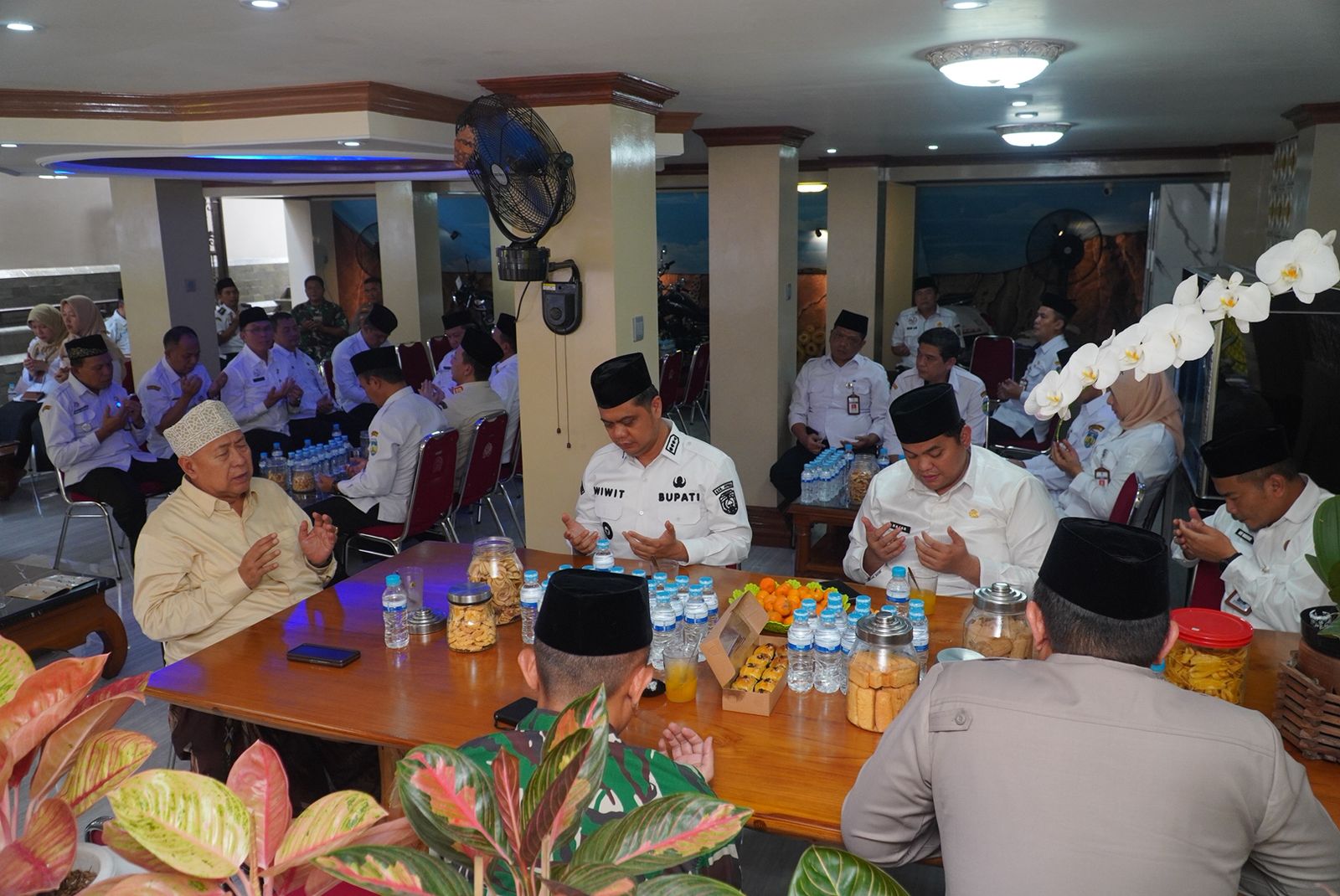 uklik.net – JEPARA- Bupati Jepara Witiarso Utomo, Wabup M Ibnu Hajar, Sekda Ary Bachtiar dan jajarannya mengawali hari pertama kerja dengan bersilaturahmi dengan para kiai dan tokoh NU dan Muhammadiyah di Kota Ukir, Rabu (25/3/2026).