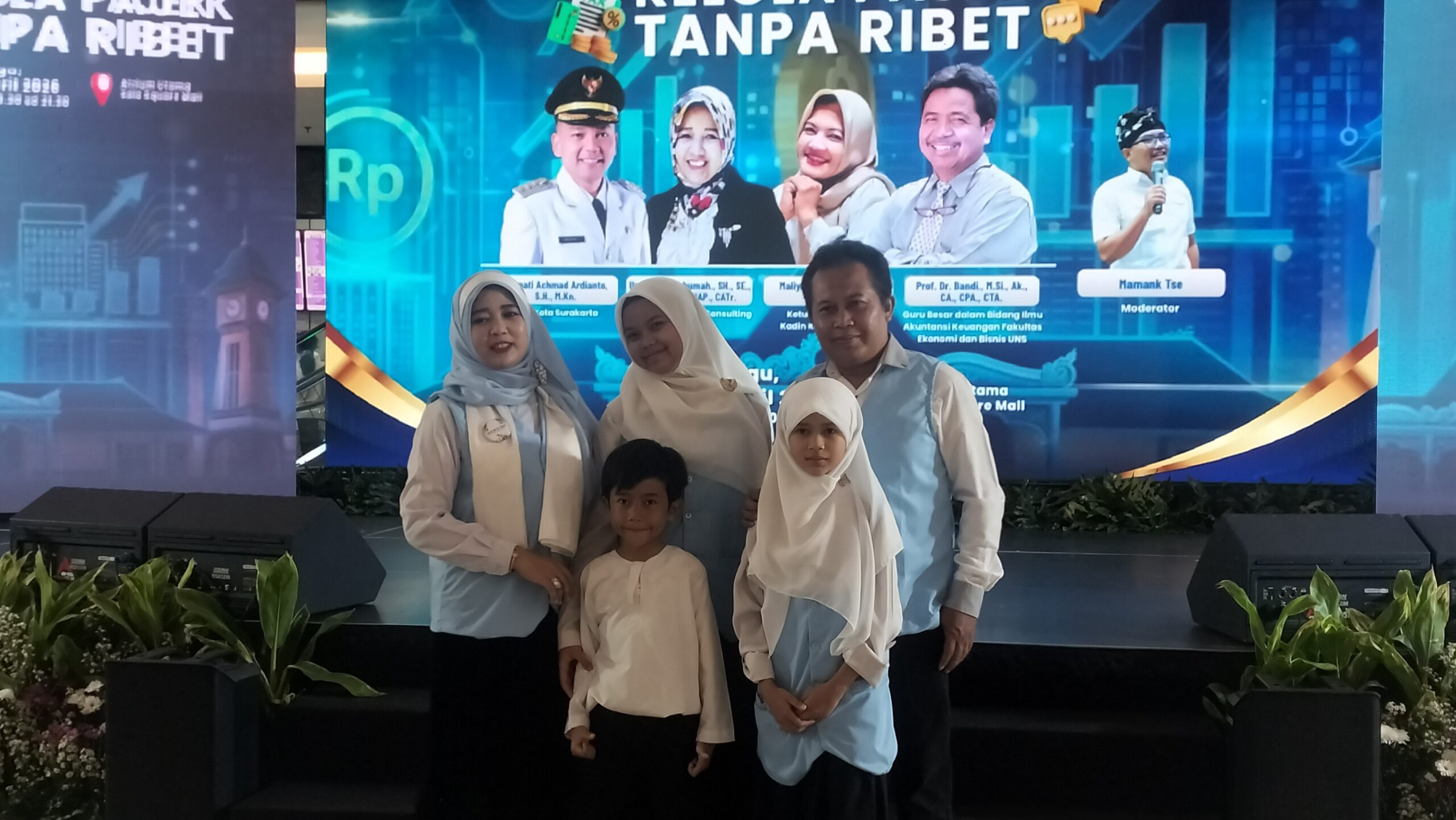 ” itu harapan kami , jadi pajak ini suatu hal yang mungkin jadi momok ya Bagi bapak ibu semua . Kenapa sih kok harus dipajikin ya? sebenarnya dalam hal ini saat kita mengetahui pajak, mengetahui ilmu dari pajak maka sebenarnya pajak itu akan menjauh. Jadi kalau orang semakin kenal semakin sayang semakin jauh tapi kalau penjenengan semua ah, aku enggak mau tahu pajak Ini akhirnya apa? Malah mendekat karena apa? Karena memberikan edukasi akhirnya dapatlah amplop coklat, amplop cinta surat tagihan. Iya, kalau dapat amplop coklat itu rasanya bagaikan apa ya enggak bisa tidur terbayang-bayang betul ya Bapak Ibu ya Dan itu menjadi sesuatu hal yang menjadi momok mungkin , tetapi saat panjenengan semua menjalankan perpajakan dengan sebaik-baiknya, Insyaallah akan menjadi baik, yang otomatis terus saya juga akan bertumbuh dengan baik karena banyak sekali perusahaan sudah berdiri lama, tetapi mendapatkan sanksi ataupun tagihan pajak , ini karena memang tidak sesuai dengan yang harus dibayarkan. Bapak Sekda sudah sampaikan, seharusnya bayar pajak itu pas tidak lebih tidak kurang,”. Ujar Umatun Markhumah , yang datang disertai suaminya, Panca Susilo dan ketiga anaknya , Almira , Yasmin dan Mehmed.