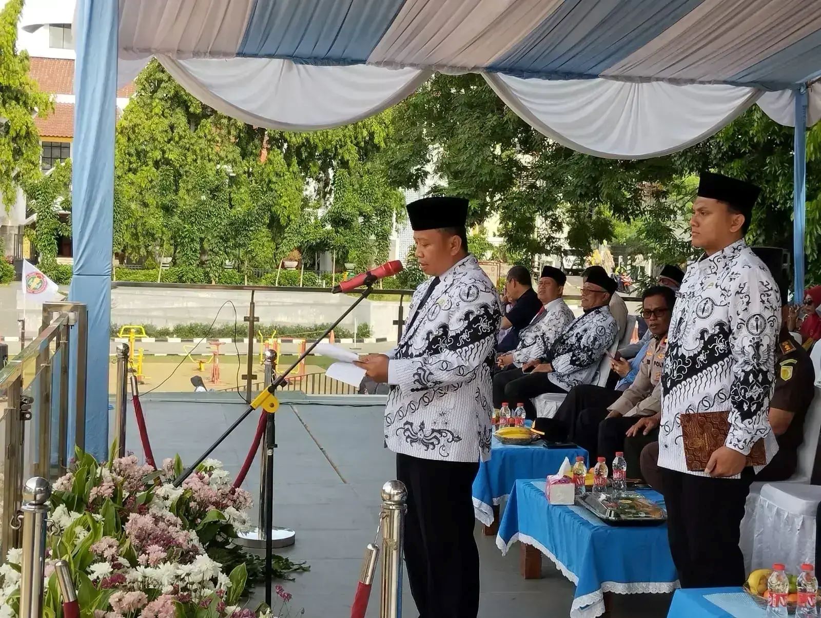 uklik.net DEPOK, Upacara peringatan Hari Guru Nasional dan HUT ke-80 PGRI tingkat Kota Depok digelar di Depok Open Space (DOS), Selasa (25/11/25). Wali Kota Depok, Supian Suri, bertindak sebagai Inspektur Upacara dan membacakan sambutan Menteri Pendidikan, Abdul Mu’ti. Dalam sambutannya, Wali Kota menekankan upaya Pemkot Depok untuk meningkatkan mutu pendidikan melalui revitalisasi infrastruktur sekolah.