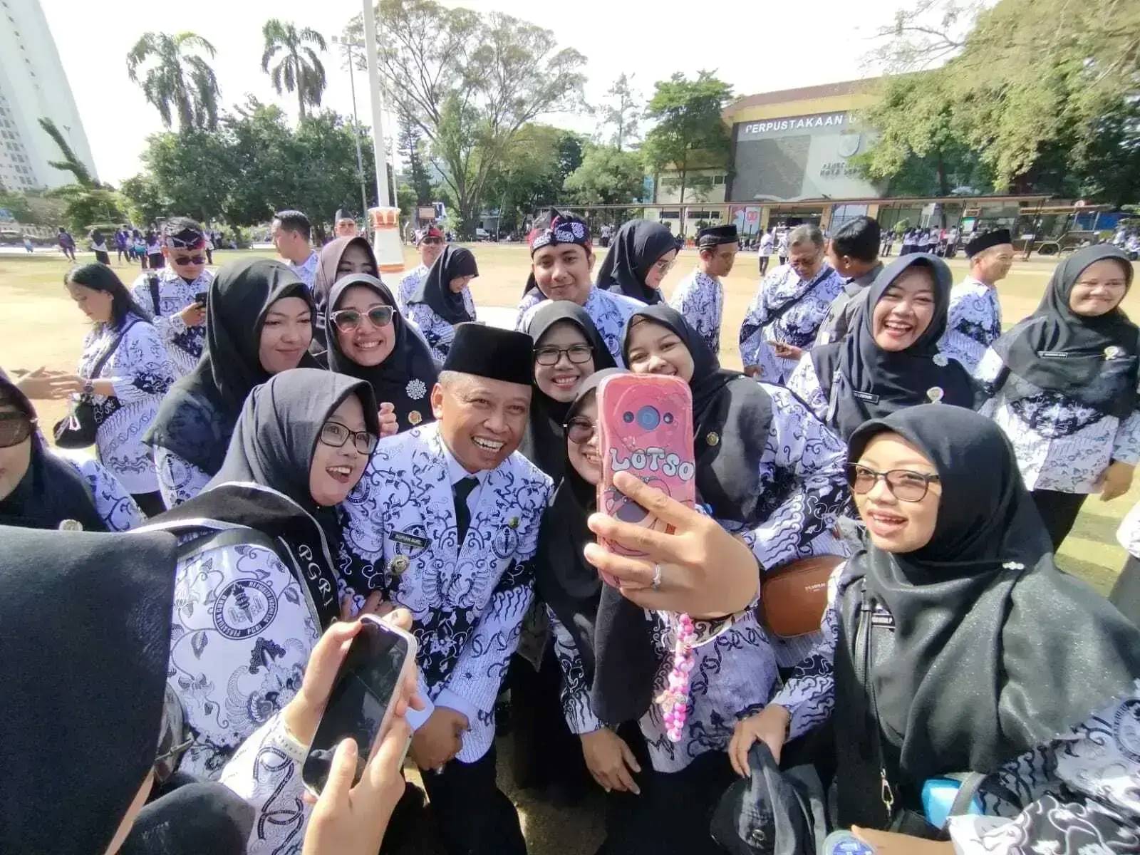 keakraban antara Wali Kota dan para guru, yang juga sempat berswafoto bersama (Foto Diskominfo Depok)