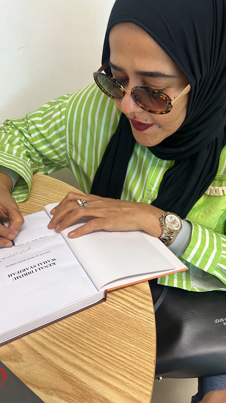Dengan latar belakang foto pondok pesantren milik Ustadz Taufik Assegaf.