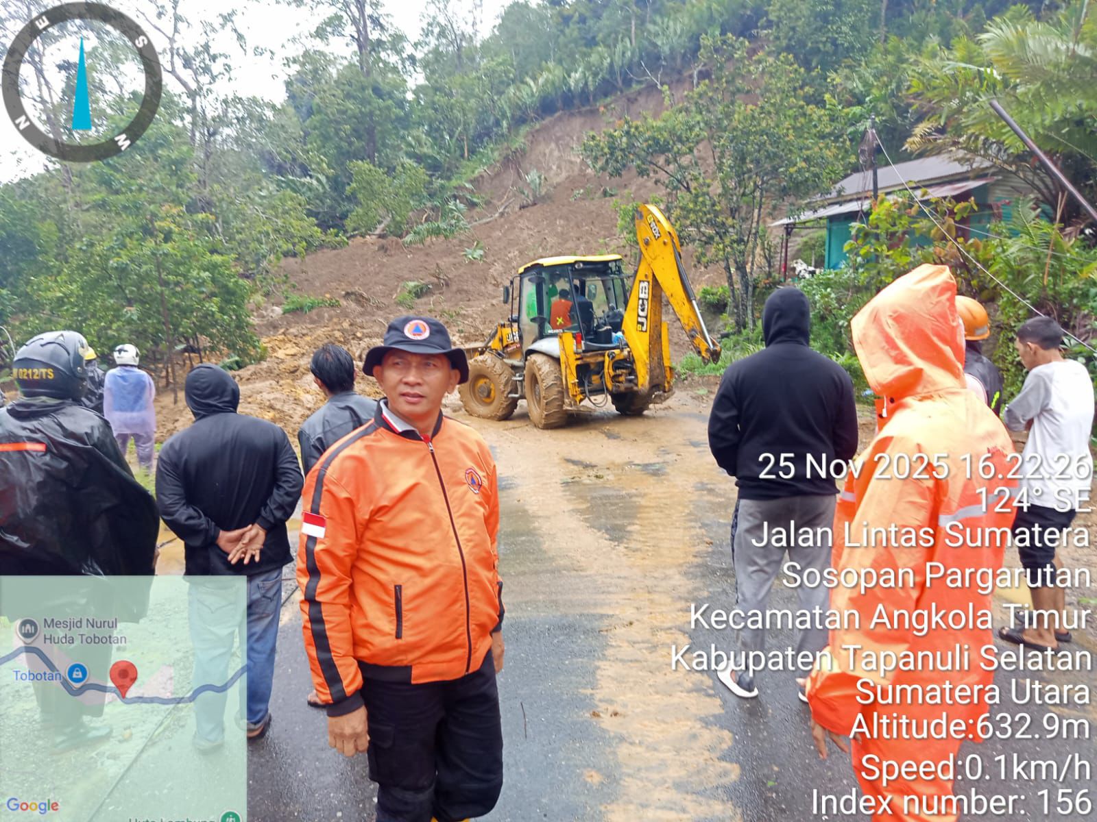 BPBD Tapanuli Selatan bersama tim gabungan mengerahkan alat berat untuk membersihkan material longsor yang menutup sejumlah akses jalan warga.