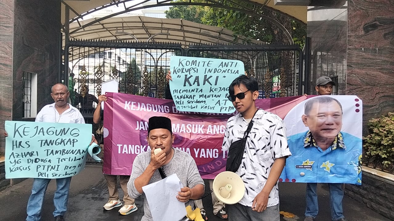 Mereka mendesak agar Kejagung RI segera memeriksa dan menangkap serta menghukum berat mantan Bupati Deli Serdang Azhari Tambunan terkait kasus pengalihan aset PTPN di Deli Serdang.