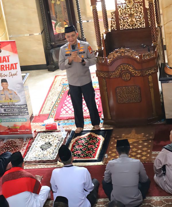 uklik.net – Kapolres Metro Depok Kombes Pol Abdul Waras, S.I.K melaksanakan kegiatan Jum’at Keliling (Jumling) dalam rangka Jum’at Curhat pada Jumat, 24 April 2026 pukul 11.45 WIB hingga selesai. Kegiatan berlangsung di Masjid Jami Baitul Ma’mur, tepatnya di Kampung Kelapa RT 01 RW 01, Desa Rawapanjang, Kecamatan Bojonggede, Kabupaten Bogor.