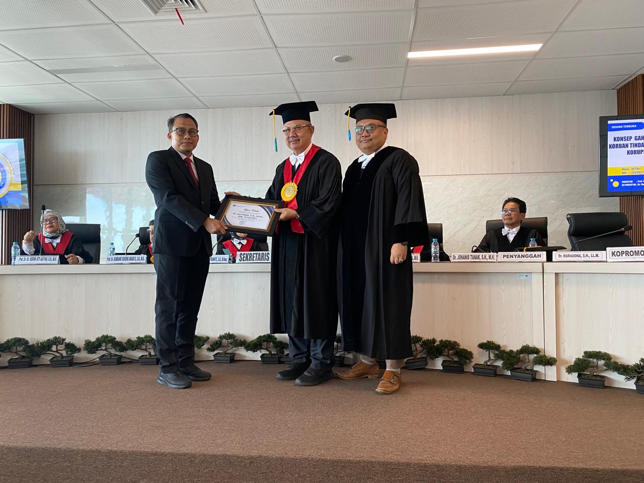 “Disertasi ini memperkaya wacana hukum pidana korupsi dengan menekankan pentingnya pemulihan hak korban. Pendekatan semacam ini penting untuk melengkapi sistem hukum yang selama ini cenderung berorientasi pada penghukuman pelaku,” ujar Prof. Basuki.