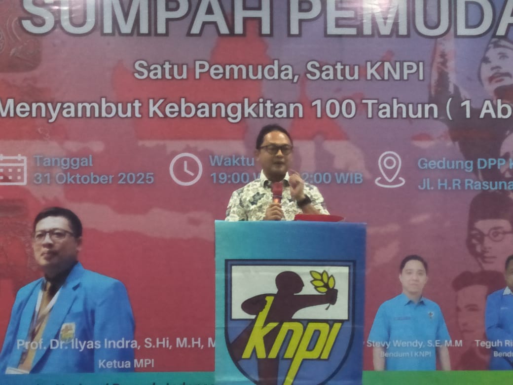 Ia menjelaskan bahwa tema peringatan kali ini adalah Satu Pemuda, Satu KNPI untuk Indonesia Emas 2045’, yang mencerminkan semangat menuju kebangkitan pemuda di satu abad Indonesia merdeka.