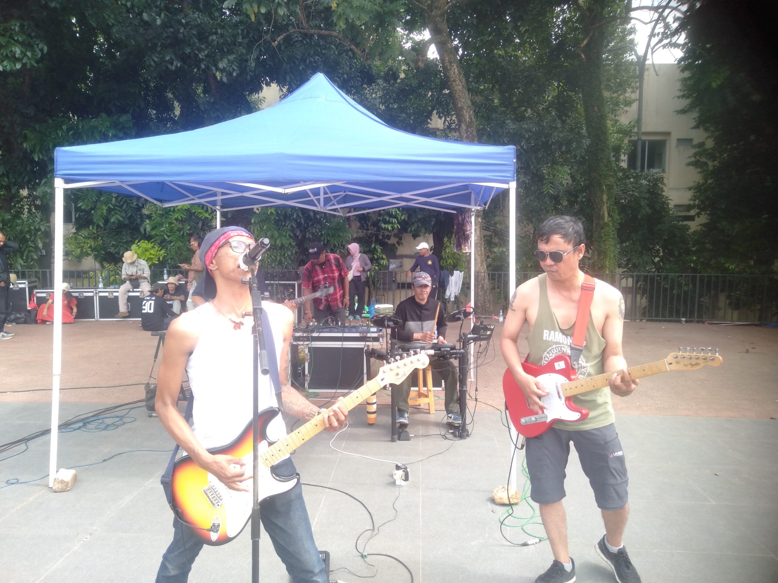 Sejak pukul 07.00 WIB, panggung musik amal dipenuhi penampilan yang menghidupkan suasana sekaligus menguatkan pesan kemanusiaan. Father and Son, Cobain Dong (Band Cover), serta Kerock dari Mapala Wiradaka Kampus Kosgoro tampil bergantian membawakan musik yang mengajak pengunjung berhenti sejenak, menyimak, dan tergerak untuk berbagi.