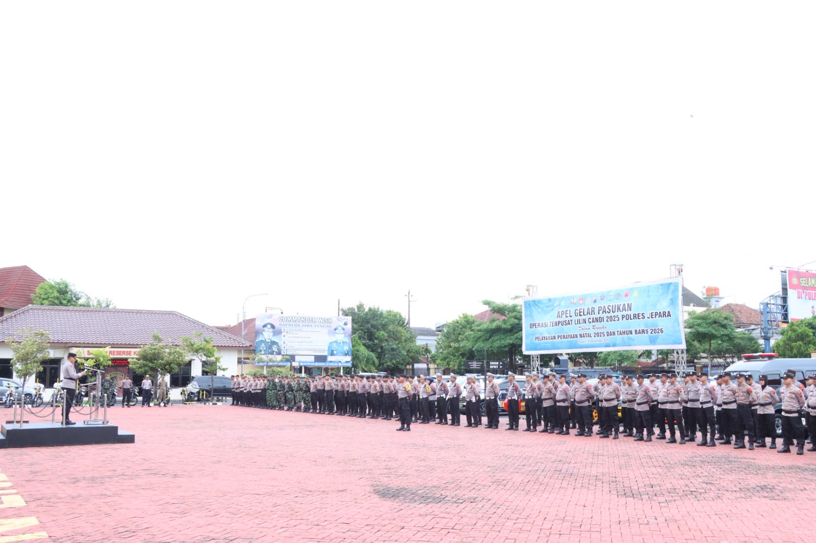 Kesiapan tersebut ditandai dengan pelaksanaan Apel Gelar Pasukan Operasi Lilin Candi 2025 yang digelar di halaman Mapolres Jepara, pada Jumat (19/12/2025).