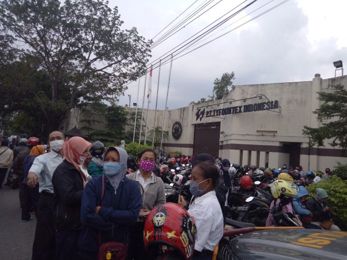 Pada Senin(17/5), ratusan karyawan pabrik tekstil itu berkumpul di depan gerbang pabrik di Gumpang, Kartasura, Sukoharjo sekitar pukul 08.00 WIB. Selanjutnya, mereka menuju Kantor Bupati Sukoharjo untuk menyampaikan aspirasi.Demi mencegah persebaran Covid-19, hanya perwakilan karyawan yang berangkat menuju Kantor Bupati Sukoharjo. Mereka ditemui Bupati Sukoharjo, Wardoyo Wijaya; Kapolres Sukoharjo, AKBP Bambang Yugo Pamungkas; dan Sekda Sukoharjo, Agus Santosa.