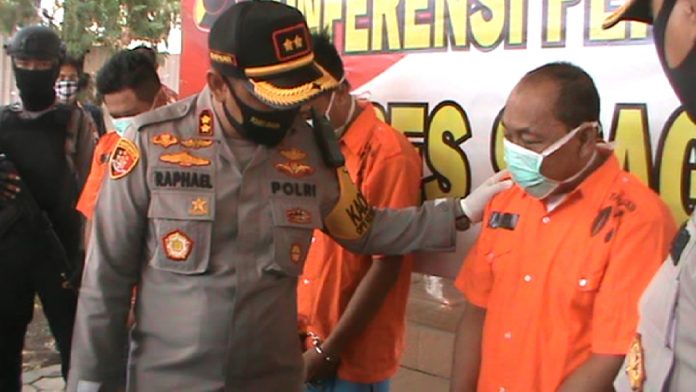 Kepala Kepolisian Resor Sragen, Ajun Komisaris Besar Polisi Raphael Sandy Cahya Priambodo , didampingi Wakapolres Kompol Eko Mardianto, memimpin tiga pengungkapan kasus dalam press rilis yang berlangsung di Mapolres Sragen , Selasa 19 Mei 2020.