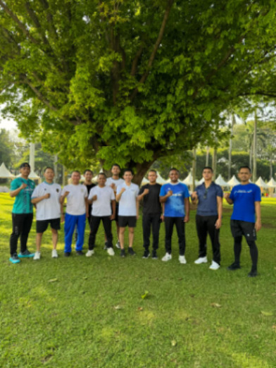 Pemimpin Cabang BRI Hayam Wuruk, Riki Rinda Sakti, menyampaikan bahwa pembinaan jasmani merupakan elemen penting dalam menjaga kualitas keamanan kantor.